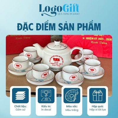 Ấm chén quà tặng in logo tại Logogift là lựa chọn hoàn hảo cho các doanh nghiệp mong muốn kết hợp giữa giá trị truyền thống và hình ảnh thương hiệu hiện đại. Với chất liệu gốm sứ cao cấp cùng công nghệ in decal logo sắc nét, các bộ ấm trà là món quà tri ân tinh tế, lý tưởng trong những dịp như Tết Nguyên Đán, hội nghị khách hàng, kỷ niệm thành lập, sự kiện ngành…