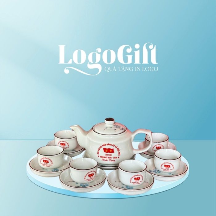 - Đa dạng lựa chọn mẫu mã: Ngoài mẫu dáng vai vuông hoa mai xanh, LogoGift còn cung cấp nhiều mẫu bộ ấm chén khác nhau phù hợp từng phong cách và ngân sách.