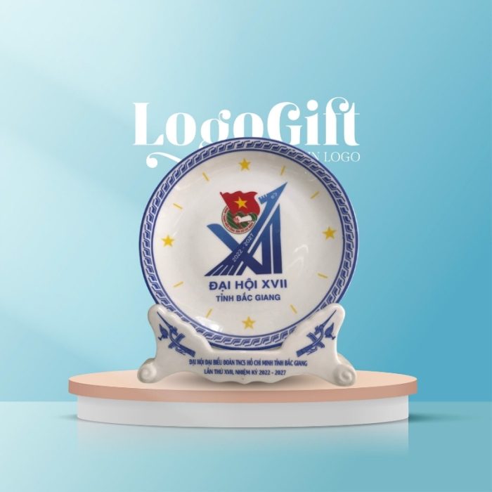 Đĩa biểu trưng quà tặng Đại hội in logo đế sứ phi 22 LG-ĐBT05 là lựa chọn ý nghĩa để khẳng định dấu ấn sự kiện. Với chất liệu gốm sứ trắng cao cấp, bề mặt láng mịn, sản phẩm toát lên vẻ tinh khôi và trang trọng. Kích thước đĩa biểu trưng quà tặng đường kính 22cm cùng đế sứ vững chãi tạo nên tổng thể hài hòa, dễ trưng bày tại văn phòng, phòng họp hay không gian trang trí.