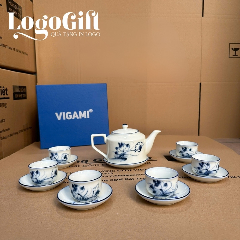 Bộ ấm trà Bát Tràng in logo luôn nằm trong top những món quà tặng Tết được ưa chuộng nhờ vẻ đẹp truyền thống và tính ứng dụng cao. Trong đó, bộ ấm trà sứ trắng thường được các doanh nghiệp đặt mua nhiều nhất vì giá thành rẻ, chỉ từ 193.000vnđ – 283.000vnđ/bộ, phù hợp để tặng đại trà số lượng lớn.