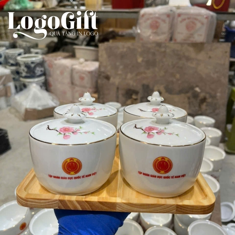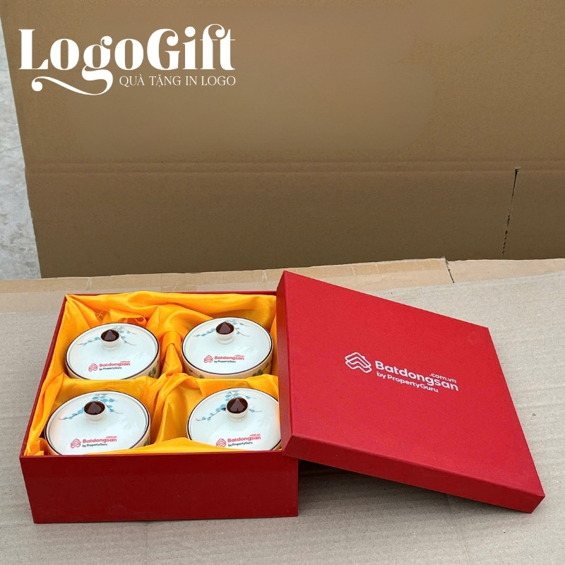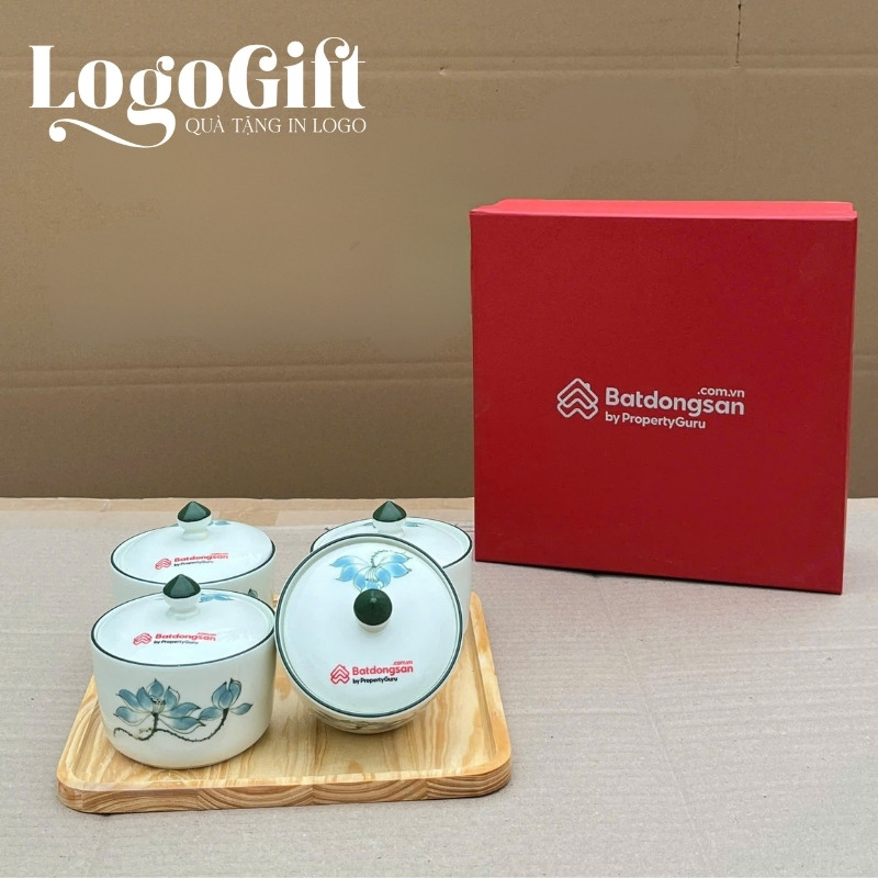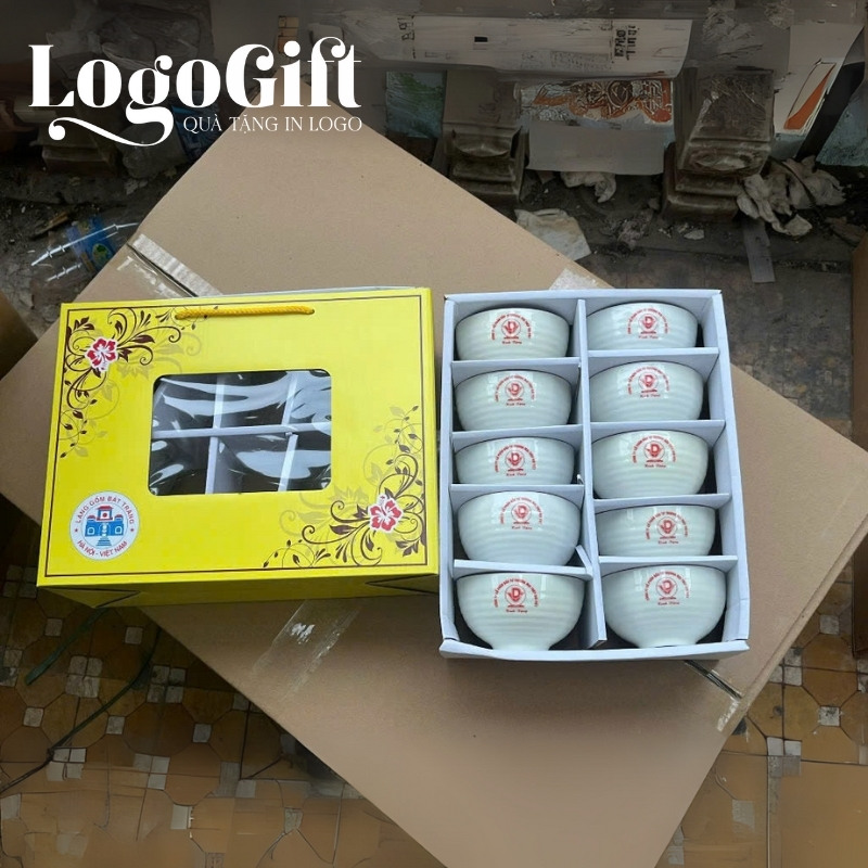 Mỗi bộ sản phẩm đều được đóng gói trong hộp đựng cứng cáp, sang trọng, có giá thành dao động từ 103.000vnđ đến 415.000vnđ. Việc in logo lên đáy hoặc thân bát được thực hiện bằng công nghệ nung nhiệt độ cao, đảm bảo an toàn tuyệt đối cho sức khỏe người sử dụng.