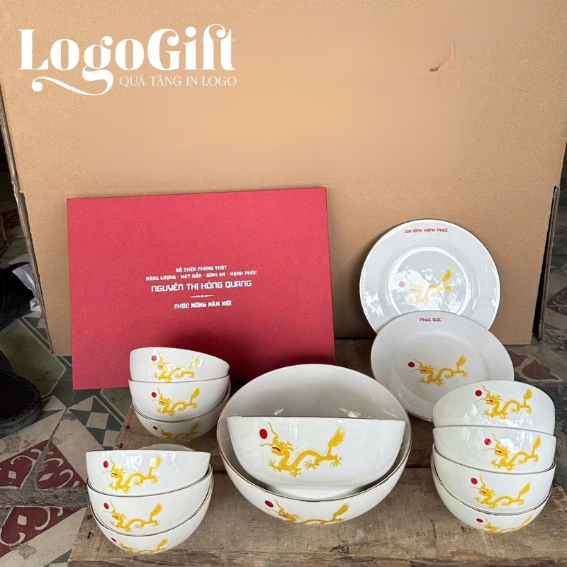 9. Bộ bát đĩa in logo tặng Tết công nhân viên