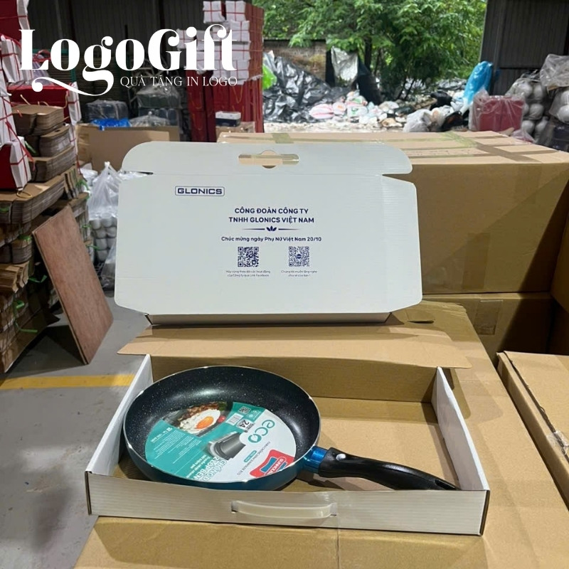 Với mức giá hợp lý từ 193.000vnđ đến 264.000vnđ/chảo, đây là lựa chọn quà tặng thiết thực, giúp doanh nghiệp thể hiện sự quan tâm đến đời sống sinh hoạt của nhân viên. Sản phẩm có thể được dán tem logo hoặc in khắc lên cán chảo để tăng tính nhận diện thương hiệu.